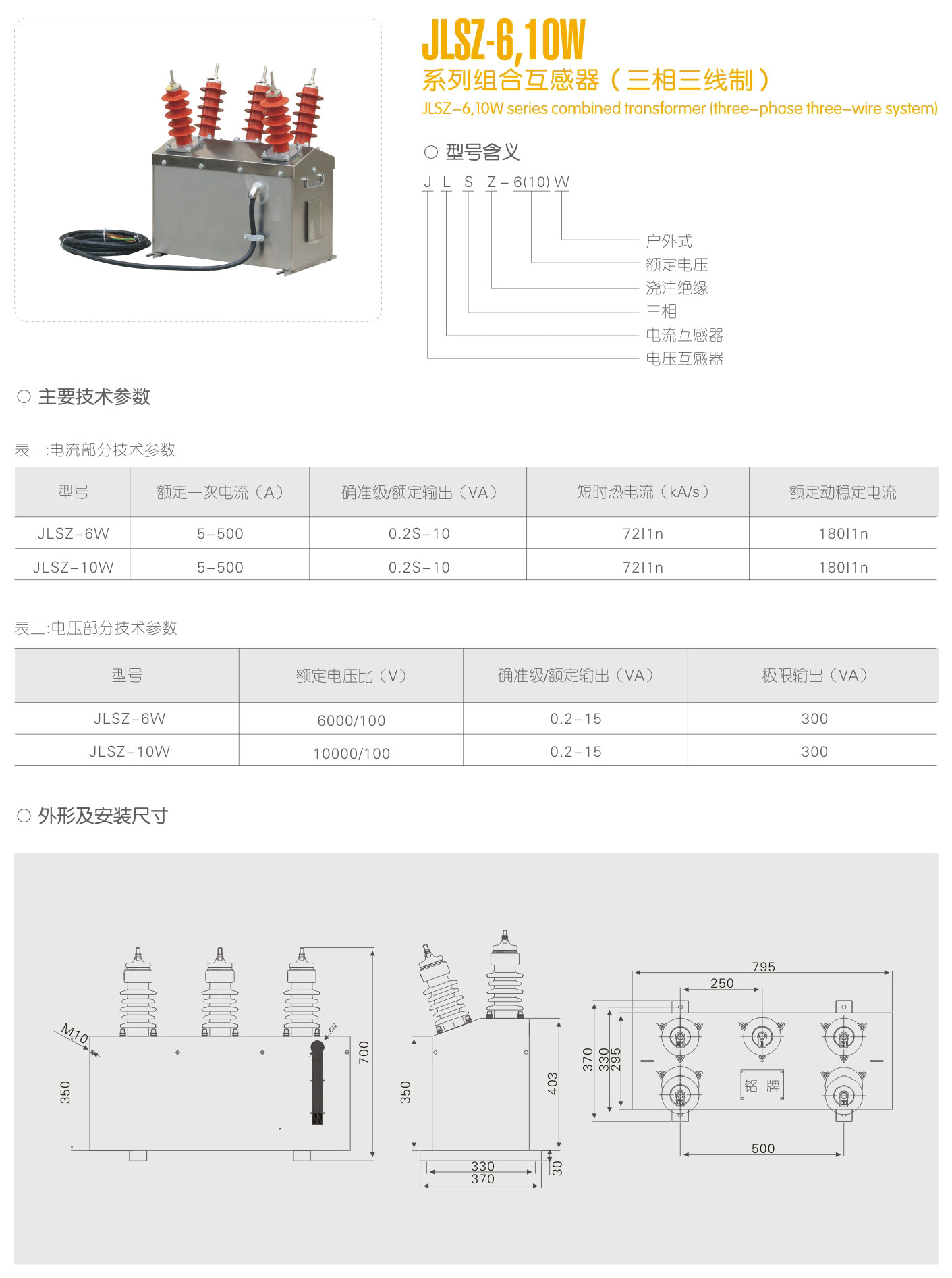 JLSZ-6, 10W系列组合互感器(三相三线制)